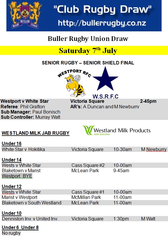 BRU Draw for Saturday 30th June 2018