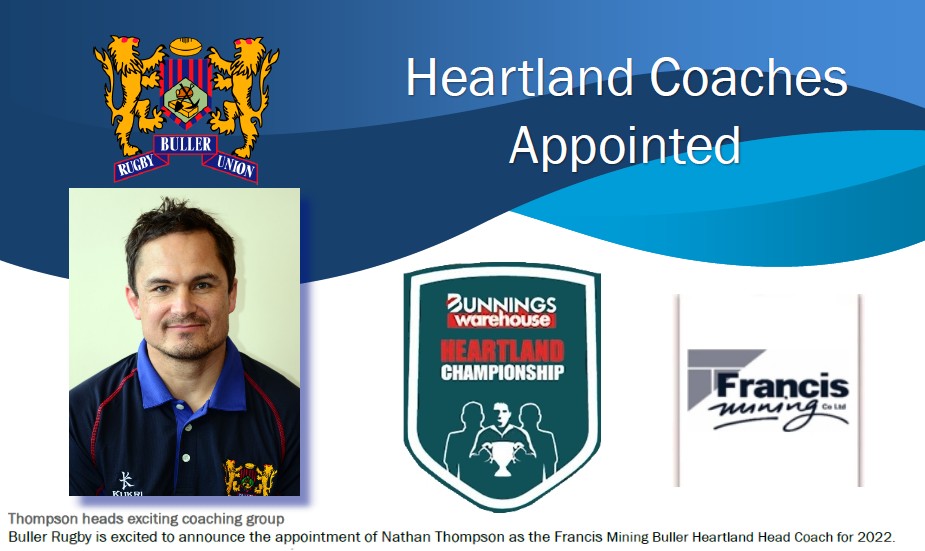 Buller Rugby is excited to announce the appointment of Nathan Thompson as the Francis Mining Buller Heartland Head Coach for 2022.