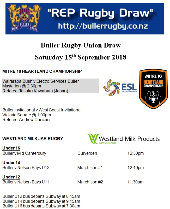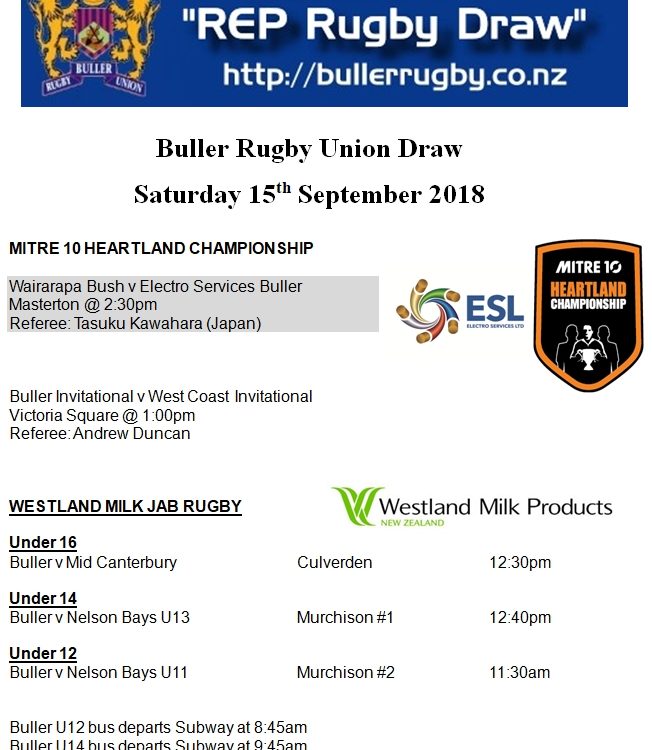 BRU Rep Draw – Saturday 15th Sept. 2018